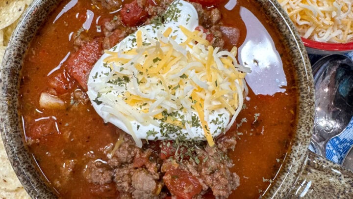 We all love a bowl of chili, but not everyone loves beans. This hearty soup without beans is the perfect chili recipe on a cold night. The whole family will be lining up to eat and grab a piece of cornbread with a buttery flavor. Trust me, your taste buds will thank you.