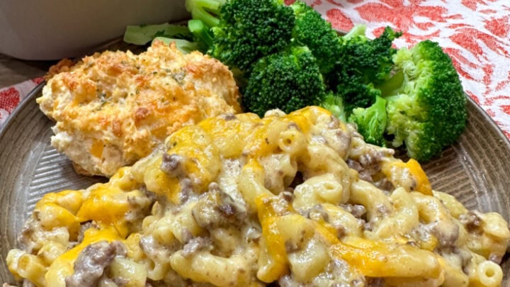 Hamburger mac and cheese is one of our favorite recipes. It goes along great with just about anything, including cornbread. The two recipes make a delicious combination and take this easy meal to the next level.