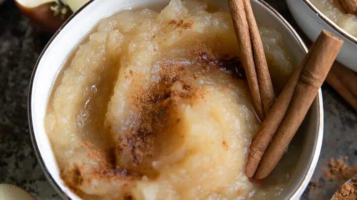 This homemade applesauce recipe is made with just five simple ingredients and is ready in just over 30 minutes. Make a big batch and enjoy this easy and delicious applesauce recipe as a yummy snack, healthy dessert, or alongside more savory dishes such as corned beef and cabbage. Homemade applesauce is always a good idea.