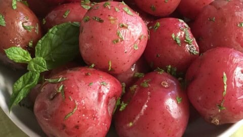 Minted new potatoes are a delicious side dish that goes perfectly with corned beef and cabbage. It's a great side dish for any meal.
