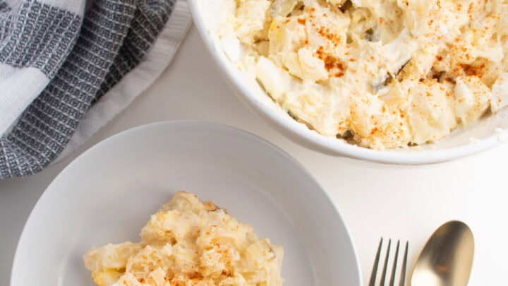 Instant Pot potato salad features tender potatoes, crisp pickles, hard-boiled eggs, and a creamy dressing. It comes together in no time, thanks to the Instant Pot, and the simple flavors are a family favorite.