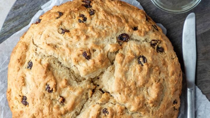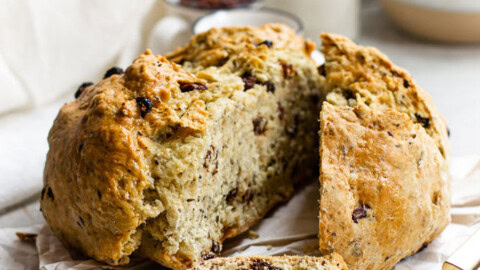 Irish soda bread is a quick bread that uses baking soda as a leavening agent and doesn’t require any yeast. The bread has a soft, biscuit-like texture that is perfect for soaking up butter! It is one of the most delicious recipes.
