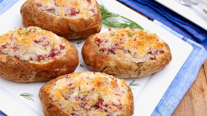 Corned beef and dill stuffed potatoes combined with Irish staples for an all-in-one easy and delicious meal.