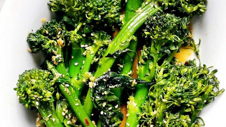 Try something new and bold with your fish dinner. This veggie stir-fry side includes broccolini in a sesame and ginger sauce that will knock your socks off!