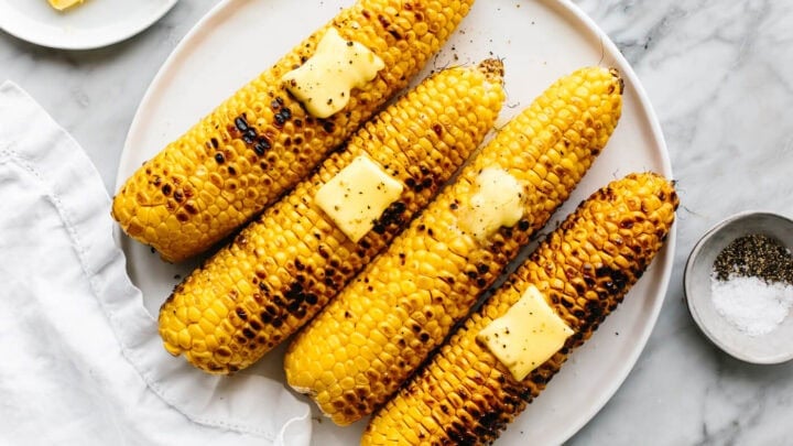 Grilled corn on the cob is another phenomenal fish dinner side dish. Itโs absolutely simple, allowing the natural sweetness of the corn to shine. Donโt forget to pull out the butter dish so everyone can add a pat to bring it all together.