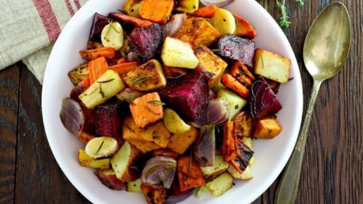 Shove it in the oven and forget about it, well, for a little while at least. Roasting root vegetables is an easy way to line up sides for your fresh fish dinner. Made with red potatoes, sweet potatoes, beets, parsnips, and red onion, youโll have a hefty dose of veggies for the whole family.ย