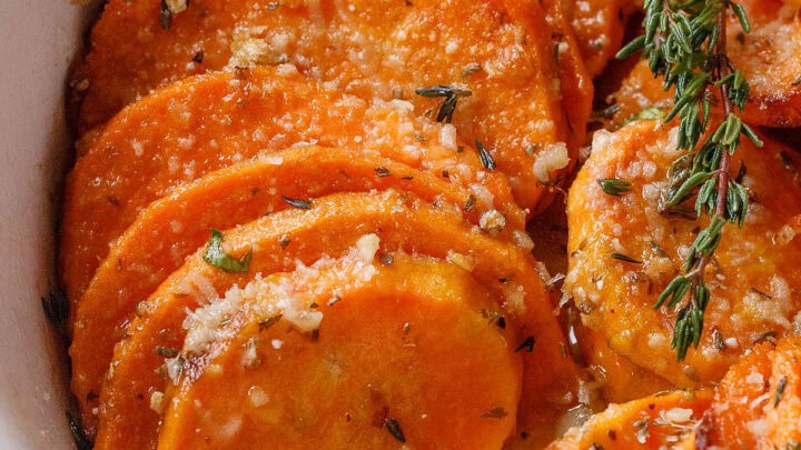 When you roast sweet potatoes with garlic and parmesan cheese, something extraordinary happens. Most people make sweet-flavored sweet potato sides, but adding savory ingredients makes it pair so well with fresh fish for dinner.
