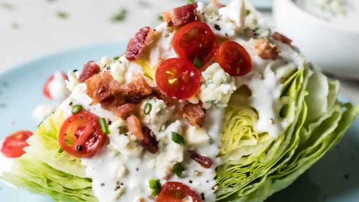 Simple, elegant, and utterly delicious, thereโs nothing like a classic wedge salad. Rich with blue cheese and bacon, and a colorful addition of cherry tomatoes makes you feel like youโve been whisked off to a New England seafood restaurant on the water.