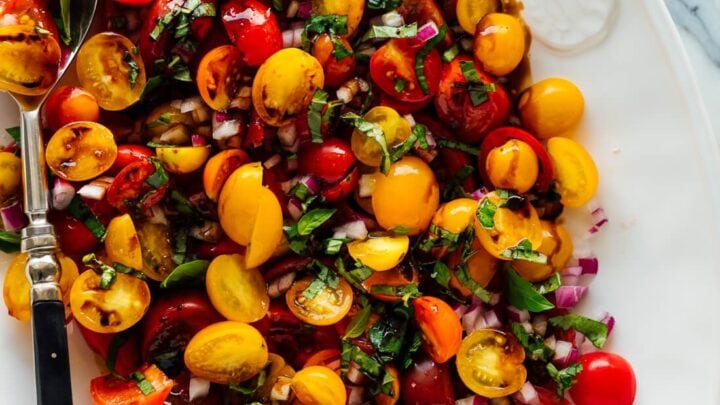 When you have fresh tomatoes, make a tomato salad that helps keep your mild white fish dinner refreshing. With mini mozzarella balls, avocado, red onion, and balsamic vinegar, youโll have a winning salad. Use cherry tomatoes or slice up bright red beefsteak tomatoes for a perfect side!