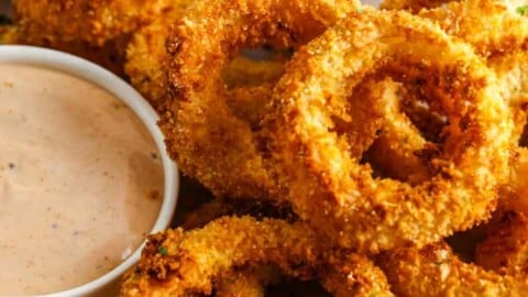 Crispy air fryer onion rings are always a great way to make burger night even better. You can even throw a couple of these on top of your burger for maximum flavor and crunch!
