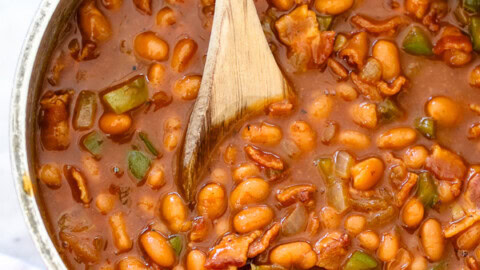 Savory and sweet, there’s nothing like slow-simmered BBQ baked beans on the table with your burgers. Pork and bell peppers help add the magic of flavor to every bite.
