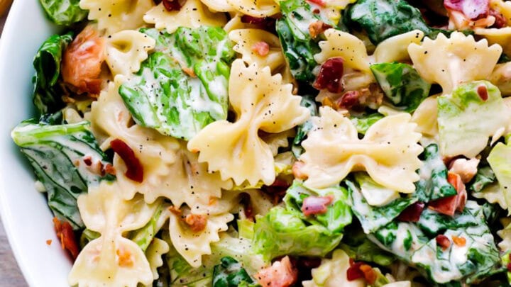 Turn the iconic sandwich into a pasta salad, and you’ll have happy eaters all around the table. It’s a simple salad you can whip up to please any size crowd.