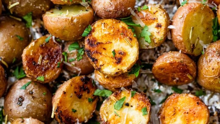 Baby red potatoes and fresh herbs unite for a simple yet upscale side dish to serve on burger night. They’re tender and full of impressive flavor, making them a great choice if you want a healthier alternative to fries.