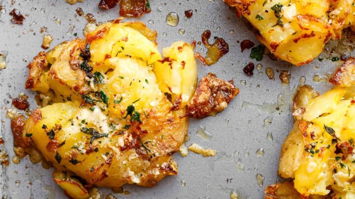 Crispy Garlic Butter Parmesan Smashed Potatoes