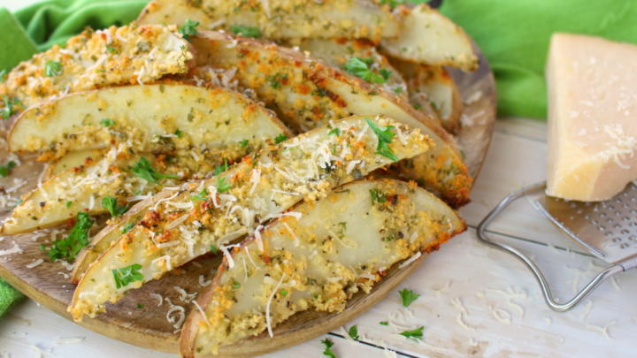 Potato wedges with parmesan cheese and garlic salt get nice and crispy outside while having that soft texture inside. They’re perfect when you want the best of crispy and soft in your potatoes on the side of your burger.