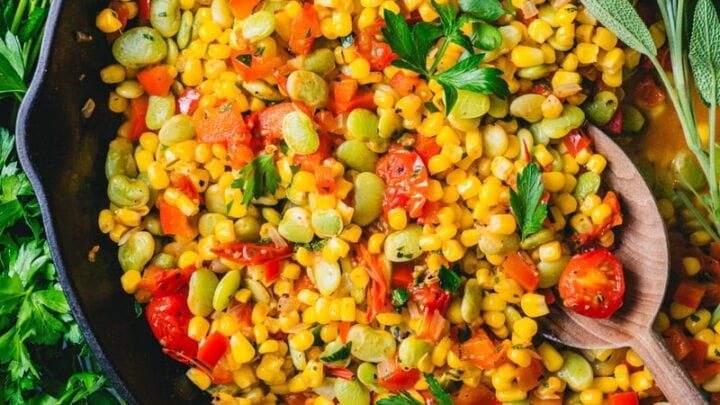 No one will be sufferin' through this succotash, that’s for sure! Loaded with lima beans, corn, and cherry tomatoes, it’s a colorful and healthy veggies side dish that goes great with burgers.