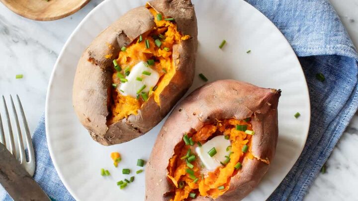 Healthy burger sides don’t get any easier than baked sweet potatoes. You can top them off the way you like or simply enjoy them as-is for all their naturally sweet tastes.