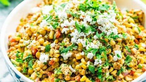 When serving a crowd, give your guests a zesty and fun side that they can heap onto their plates next to their burgers. Mexican street corn salad brings all the fun of elotes with less mess.
