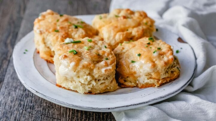 Cheesy and savory, these garlic cheddar biscuits are an easy way to add bread to your soup meal. They couldn’t be any easier, too, making them one of the best things to pair with your delicious recipes for soup.