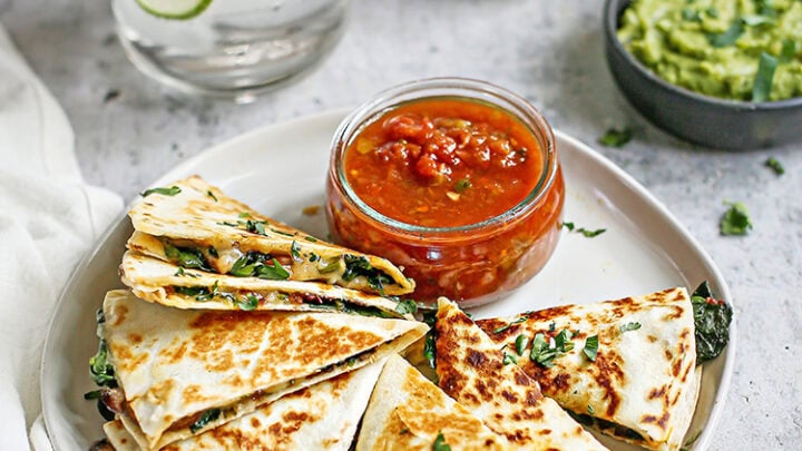 Quesadillas are a great idea with soup because you can customize them to your tastes. These are made with spinach and mushroom, a match for creamy mushroom soup. If you make them fully southwest with beans, tomatoes, onions, and cheese, they’ll be a hit with your tortilla soup too!