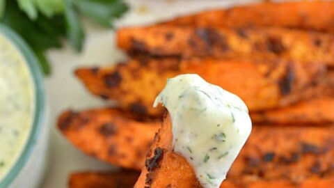 Sweet 'n' Spicy Sweet Potato Fries with Cilantro Ranch Dip