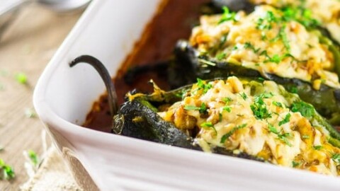 Here’s a tasty side that will go great with that tortilla soup. When made with butternut squash, chorizo, and smoked cheddar, chile rellenos are worth the effort while your soup simmers on the stove.