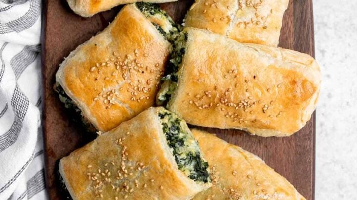 Creamy feta and cheddar rolled with spinach in a puff pastry can easily be a party appetizer or a side dish for your soup. Try it with a creamy soup for a café-style meal in the comfort of your own home.